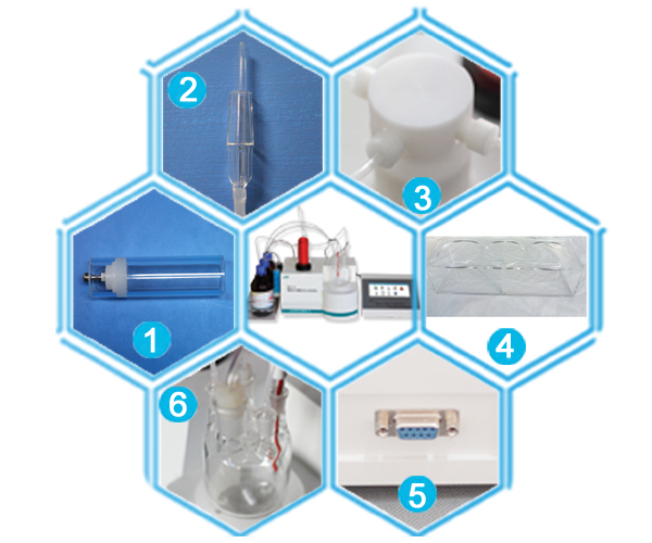 6、反應(yīng)瓶:卡爾費(fèi)休試劑有一定的腐蝕性,反應(yīng)瓶特有的磨砂口設(shè)計(jì)使得與磨砂玻璃管銜接更緊密大大減少了試劑的揮發(fā)漏液等問題,保護(hù)使用者健康安全;在反應(yīng)瓶中還配有一顆攪拌子,在反應(yīng)時(shí)通過轉(zhuǎn)動(dòng)使得試劑與樣品更有效的接觸,反應(yīng)更得徹底,測試的結(jié)果更真實(shí)、更準(zhǔn)確。