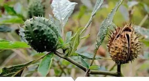 2、曼陀羅:野生全白花,成筒狀。蒴果直立生,有堅硬針刺。常生于荒地、旱地、宅旁、向陽山坡、林緣、草地。喜溫暖、向陽及排水良好的砂質(zhì)壤土。具有藥用或觀賞價值。
