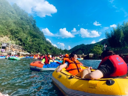 下午我們選好自己的漬水的“武器”準備開戰(zhàn)!! 我們兩人一隊乘著皮筏順流而下,穿梭在蜿蜒流動的河中,陽光普照,四面青山環(huán)繞,漂流其間,迎面而來的涼風與水珠沖刷掉了夏日的酷熱。刺激的漂流也似乎喚起了大家尋樂的童心,河道中彼此你追我趕,一旦相撞少不了要一場戲水激戰(zhàn)。飛濺的河水浸透了衣服,大家卻沉浸在快樂里。在這里,有的員工暫時忘卻了自己的俗世身份。一眼望去,大龍灣旅游區(qū)的秀麗景色,讓人的心瞬間就平靜下來,只為更美好的明天。有人在經(jīng)歷了驚心動魄的團隊漂流之后,也發(fā)出了感嘆“這是生命之旅,是自我突破”。