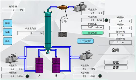 點(diǎn)擊“過濾試驗(yàn)”按鈕,即可進(jìn)入到試驗(yàn)主界面,如圖所示(系統(tǒng)試驗(yàn)主界面配圖):