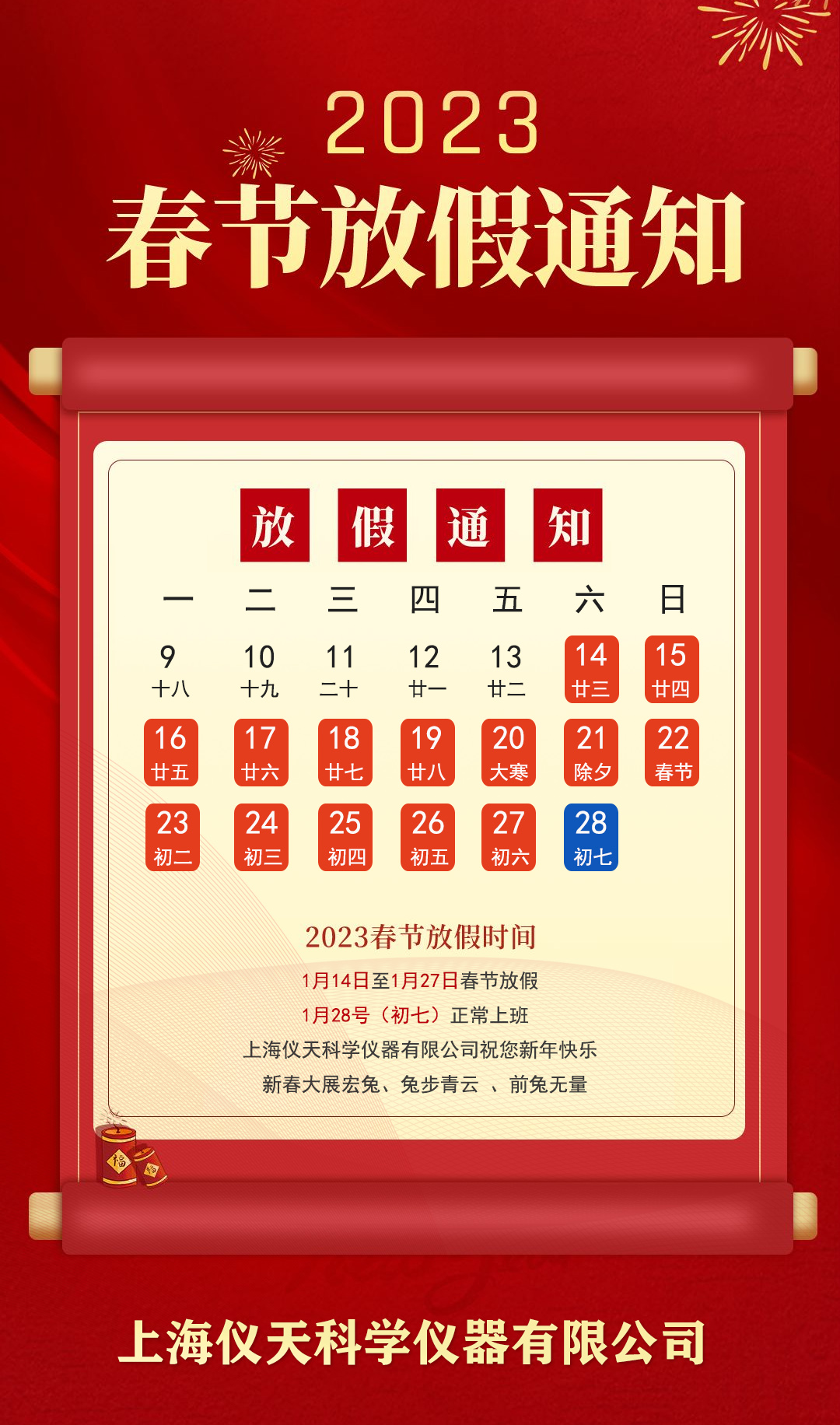 2023年春節(jié)放假通知